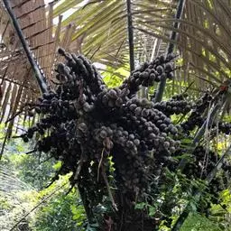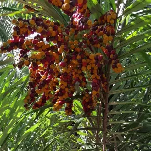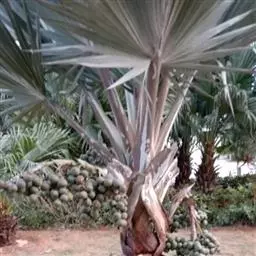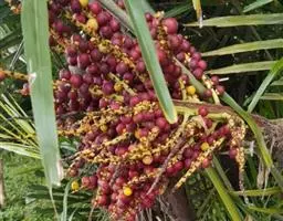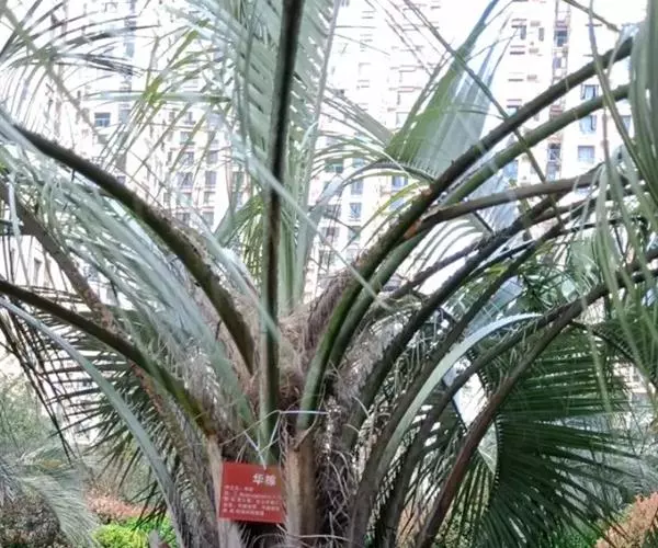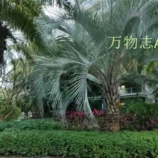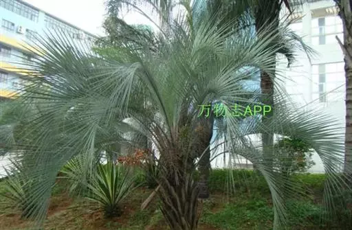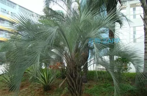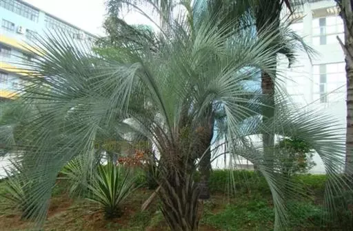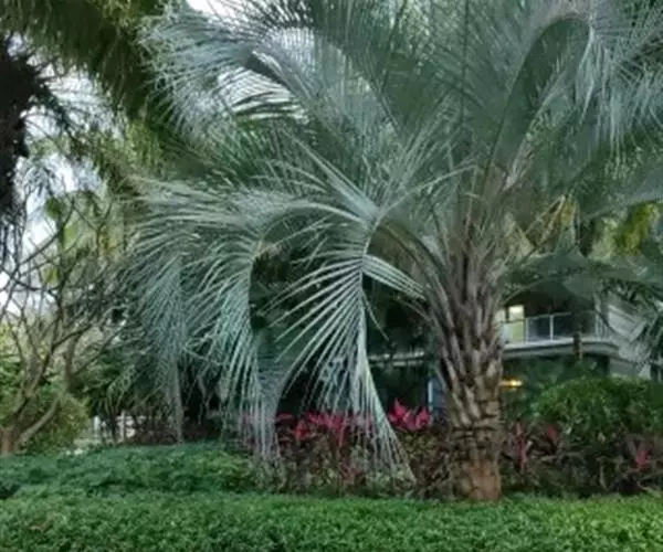 布迪椰子因其银灰色叶片,紫红色花序梗及花瓣,具有观赏价值, 而且它的果肉糖分高,可供食用、制作果冻。