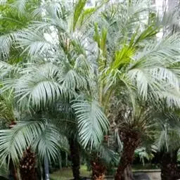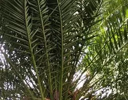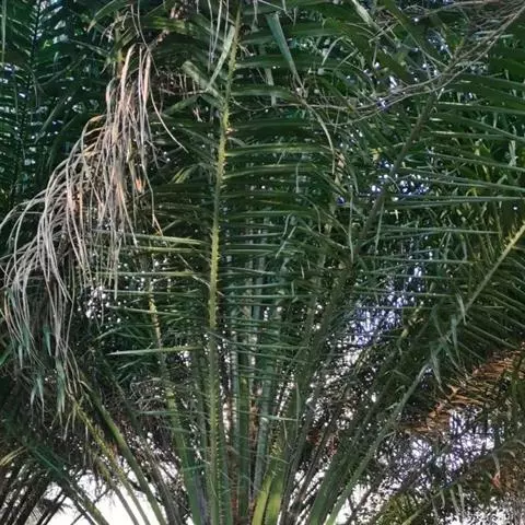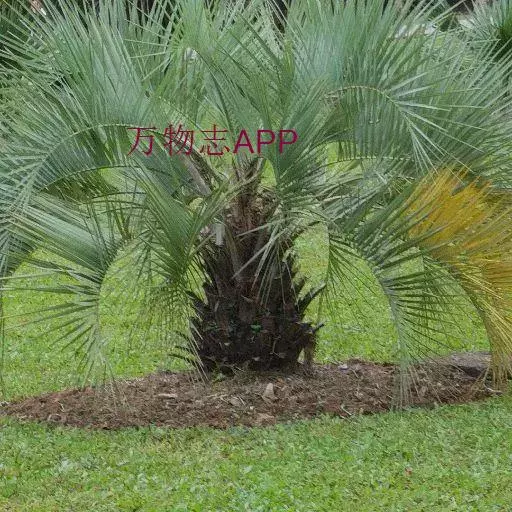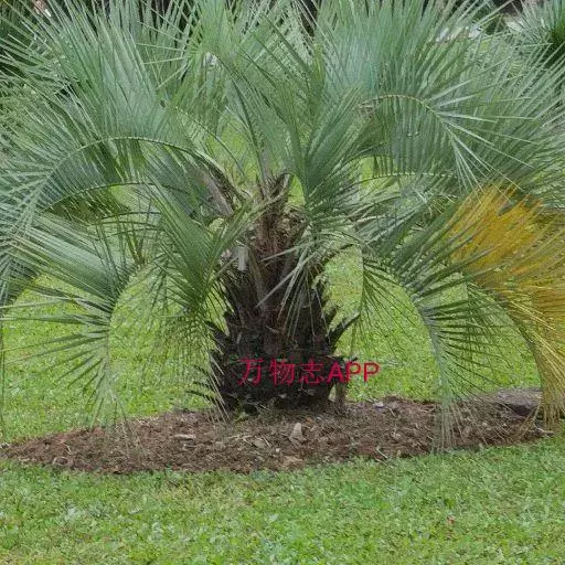 布迪椰子(学名:Butia capitata (Mart.) Becc.)是棕榈科,布迪椰属常绿观赏树种,单干型,高可达8米,老叶基残存包裹于树干,粗壮、坚硬。羽状叶,弯曲如弓形,有羽片对,厚革质,叶端尖锐,小叶片长灰绿色,叶柄具刺;雌雄同株;花序腋生,花序梗及花瓣均为紫红色,果卵球形,成熟时为橙红色;种子圆形或近圆形,核果内有种子。