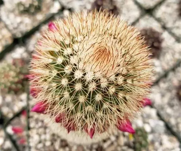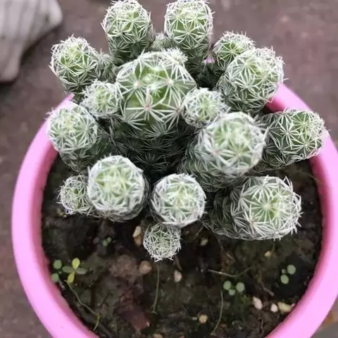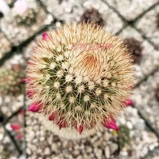仙人掌科乳突球属原产墨西哥,通常单生,茎圆桶形,径粗9-10cm,高25-30cm,深绿色。棱13-21,放射刺20-30,中刺7-15,长2cm,红褐色。花色紫红。喜温暖干燥和阳光充足环境。较耐寒,耐干旱和半荫,不耐水湿。土壤以疏松、肥沃和排水良好的沙质壤土。生长适温为18-24°C,冬季温度不低于5°C。
