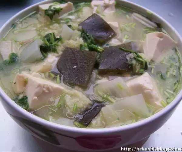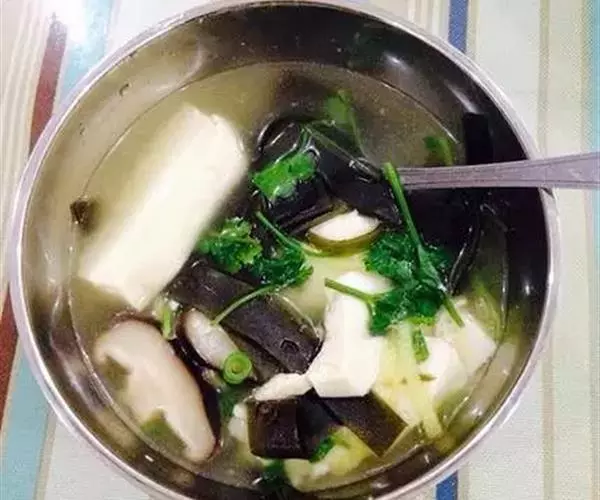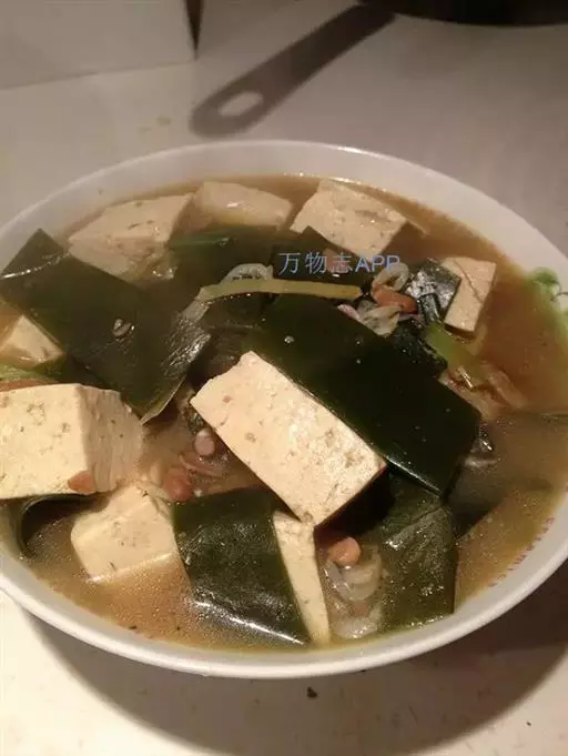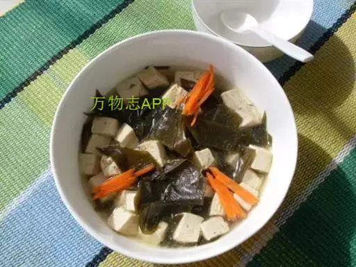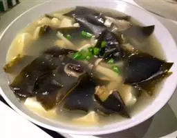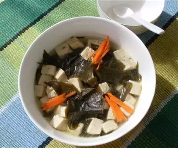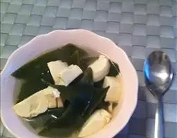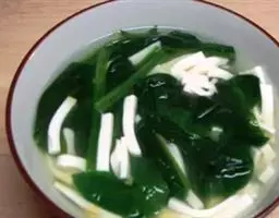 豆腐海带汤是一道色香味俱全的传统名肴,属于北京菜。将豆腐切丁,菠菜切段,海带切丝;锅内放入开水,加豆腐丁、海带丝、葱花;水沸放菠菜;煮片刻加盐、味精、胡椒粉、香油即盛入碗内。