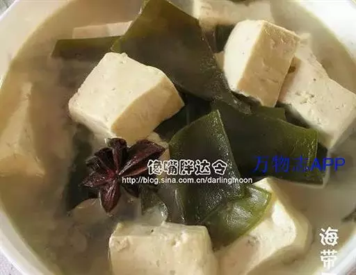 海带(鲜):海带含碘量极高,是体内合成甲状腺素的主要原料,常食可令秀发润泽乌黑。海带具有一定的药用价值,因为海带中含有大量的碘,碘是甲状腺合成的主要物质,如果人体缺少碘,就会患“粗脖子病”,即甲状腺机能减退症,所以,海带是甲状腺机能低下者的最佳食品。海带中还含有大量的甘露醇,而甘露醇具有利尿消肿的作用,可防治肾功能衰竭、老年性水肿、药物中毒等。甘露醇与碘、钾、烟酸等协同作用,对防治动脉硬化、高血压、慢性气管炎、慢性肝炎、贫血、水肿等疾病,都有较好的效果。海带中的优质蛋白质和不饱和脂肪酸,对心脏病、糖尿病、高血压有一定的防治作用。中医认为,海带性味咸寒,具有软坚、散结、消炎、平喘、通行利水、祛脂降压等功效,并对防治矽肺病有较好的作用。海带胶质能促使体内的放射性物质随同大便排出体外,从而减少放射性物质在人体内的积聚,也减少了放射性疾病的发生几率。