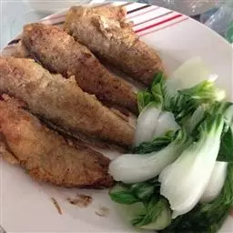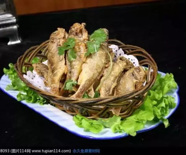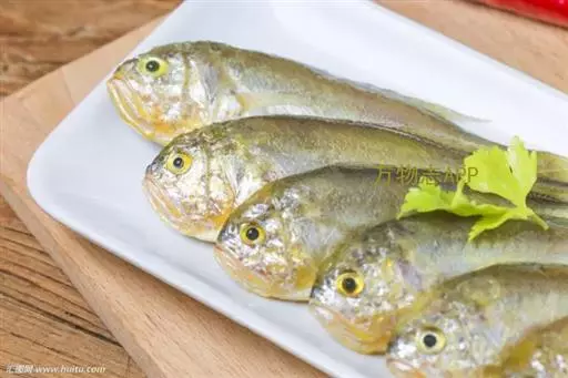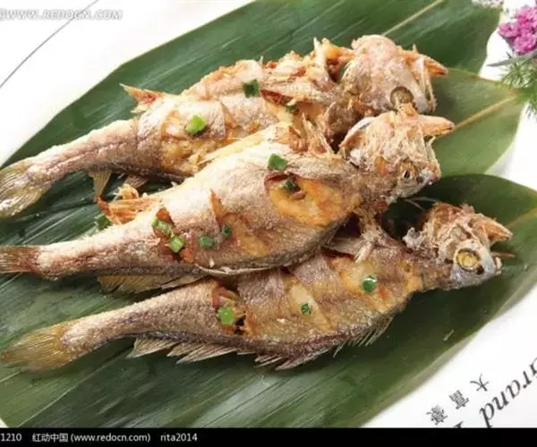 干烧小黄鱼 是由黄鱼等制作的食物,配料是葱、姜、蒜。