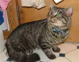 美国刚毛猫是1966年在美国纽约郊外的一个农场中,一种美国短毛猫在繁殖中因基因突变产下的。这种猫的特点是毛硬邦邦的,缩在一起,毛尖玩成钩状,极具弹性。正如名字形容的一样,它的毛很粗,像把刷子,和我们摸一般的猫时那种柔软、顺滑的感觉完全不同。它的性情属易感寂寞型,所以非常喜欢让人温柔地抱在怀里或抚摸它,它的脸型和体型与美国短毛猫相似。