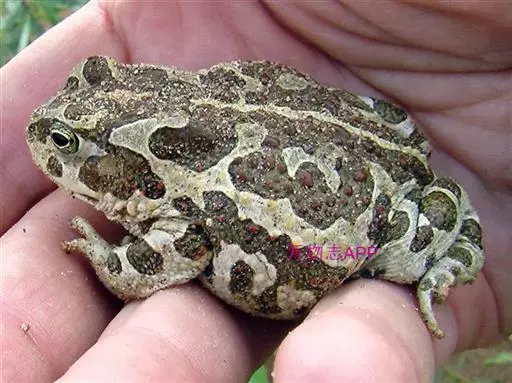 花背蟾蜍,两栖纲,蟾蜍科。体长6-7cm。雄蟾蜍背面橄榄黄色,皮肤粗糙,密布大小瘰疣,上有许多小白刺。雌蟾蜍背面浅绿色,有深褐色或酱黑色花斑,瘰疣稀疏,皮肤较光滑。腹面乳白色,满布扁平小疣。口后有大疣。耳后腺大而扁平。雄性皮肤粗糙,头部、上眼睑及背面密布不等大的疣粒,雌性疣粒较少,耳后腺大而扁;四肢及腹部较平滑。