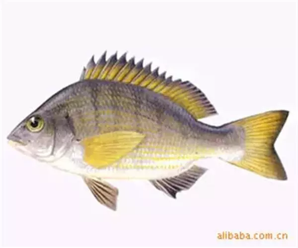 俗称黑加吉,幼鱼称海鲋。硬骨鱼纲、鲈 形目、鲷科。系暖温性近海底层鱼类。体呈 长椭圆形,侧扁而高。体背面极狭窄,形成 棱状线。头中大,背缘浅弧形倾斜隆起至背 鳍起点,前部圆锥形,吻端钝尖。口中大,前 下位,稍斜裂。两颌等长。上下颌前端各有 犬齿6枚,上下颌两侧各有3行臼齿。眼中 大,侧上位; 眼间隔宽而隆起,宽为眼径的 2倍多。前鳃盖骨边缘平滑,鳃盖骨后缘有1 扁平钝棘。鳃孔中大。尾柄较粗,长为高的 1.4—1.7倍。背鳍1个,始于胸鳍起点背上, 基底长,由11根强鳍棘和11—12根鳍条组 成,棘可收于背沟中,第4棘最长。胸鳍尖 长,侧下位,第6鳍条最长,向下渐短,最 长鳍条可伸达肛门后至臀鳍起点。腹鳍较 小,始于胸鳍末基下方,有1棘。臀鳍基底 短,与背鳍鳍条部近相对,前缘有3棘,第 2棘粗壮而长。尾鳍叉形。体被较大弱栉鳞。 有侧线。体青灰色间有黄色,有若干条褐色 横纹,腹部色较淡。侧线起处有1黑斑。背 鳍基底黄色,边缘暗灰色。胸鳍黄色。腹鳍、 臀鳍暗黑色。尾鳍黄色,边缘黑色。幼体呈 浅灰色,体侧有6—8条深色横条纹,背鳍 暗灰色,尾鳍浅黄色,后缘黑色,其余各鳍 均灰白色,臀鳍间有黑色。体长一般为12— 30厘米。