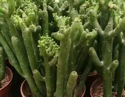 魁伟玉原产南非,是一种大戟科的多年生肉质植物,植株具粗圆筒形肉质茎,有10条以上的突出棱,…
