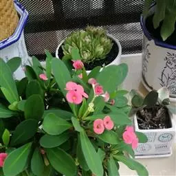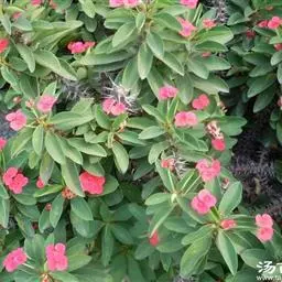 虎刺梅:别称铁海棠,是蔓生灌木植物。茎多分枝,长60-100厘米,直径5-10毫米,具纵棱,密生硬…