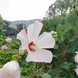 白花重瓣木槿为锦葵科木槿,属落叶灌木。本种为栽培变种,与木槿相似,仅花为白色、重瓣。…
