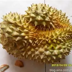 榴梿,是一种锦葵目、木棉科巨型的热带常绿乔木,叶片长圆,顶端较尖,聚伞花序,花色淡黄,果实足球大小…