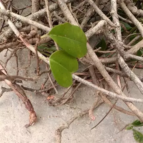 通奶草 一年生草本,长达15厘米,折断有白色乳汁。茎纤细,匍匐,多分枝,通常红色,稍被毛。单叶对生,有短柄,叶片卵圆形至矩圆形,长4~8毫米,宽3~4毫米,先端圆钝,基部偏斜,边缘有极细锯齿。夏日开淡紫色花,花单性,同株。