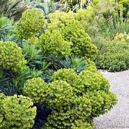 常绿大戟以丛生灌木的形式生长,具有很多茎,在杯状聚伞花序上具有典型的黑色或是深棕色蜜腺。…