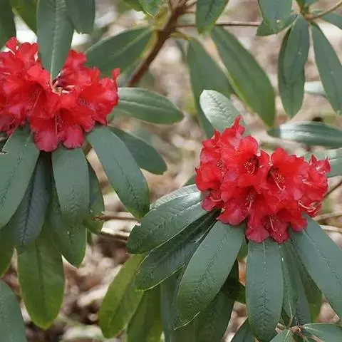 问客杜鹃:灌木,高1-3米。幼枝细长,密被腺体状鳞片。叶革质,椭圆形,卵状披针形或长圆形,上面被鳞…