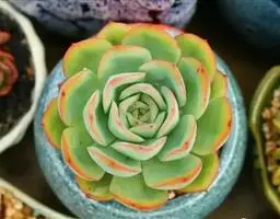 薄叶蓝鸟 叶片蓝绿色,叶尖红色,带粉,花型紧凑,非常漂亮。原产于墨西哥,现世界各地均有栽培。