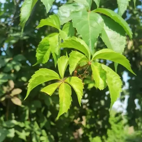 五叶地锦 Planch.)是葡萄科地锦属的木质藤本。小枝无毛;嫩芽为红或淡红色;卷须总状5-9分枝,…
