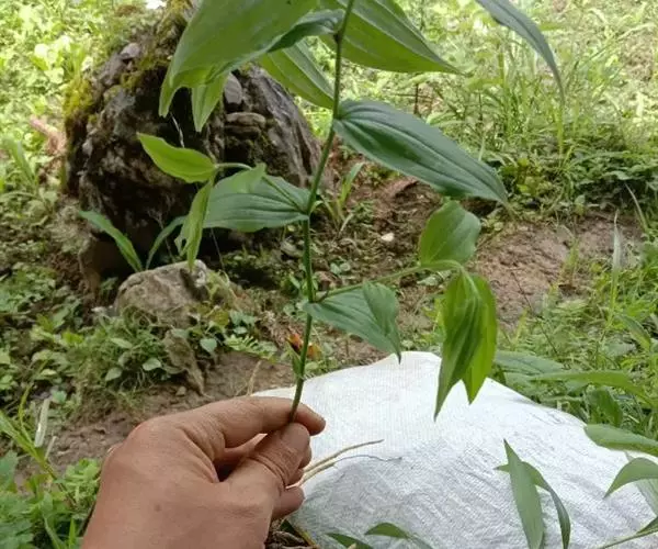 万寿竹,又名:白龙须、白毛七、白毛须、百尾笋等,是百合目百合科植物,根状茎横出,质地硬,呈结节状;叶纸质,披针形至狭椭圆状披针形,伞形花序有花3-10朵,花紫色或白色;花被片斜出,倒披针形,种子暗棕色,花期5-7月,果期8-10月。