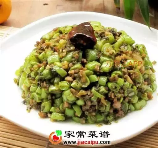 主料:四季豆、猪肉糜 、干红辣椒、蒜、花椒、碎米芽菜