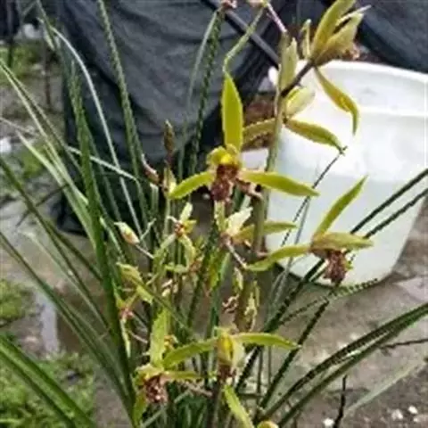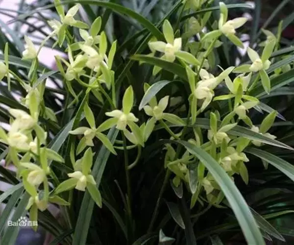 寒兰是兰科兰属的地生草本植物。茎为椭圆形;叶呈带状,尾部修长渐尖,叶脉较明显;每秆花枝开5-12朵,…