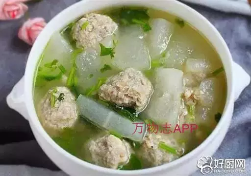 原料:精肉、生姜末、精盐、味精、香菜、香油。 丸子汤