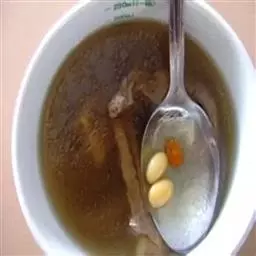 5、食用时,分10克,每份放豌豆5克、牛肉丸子12个和汤,即可。