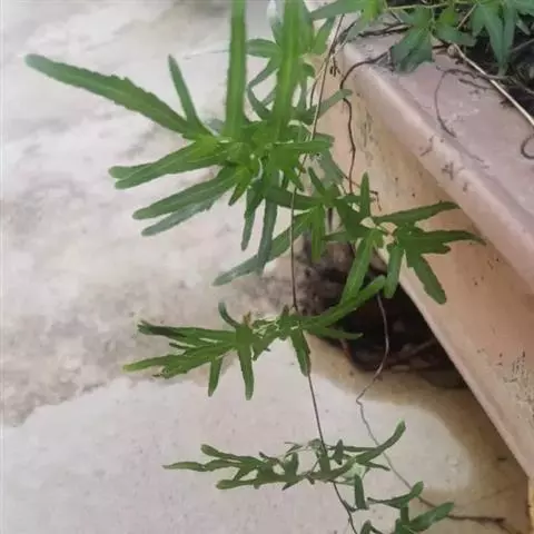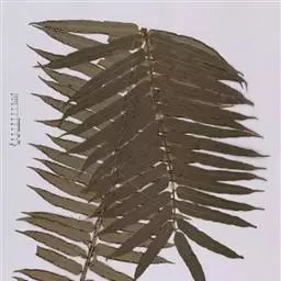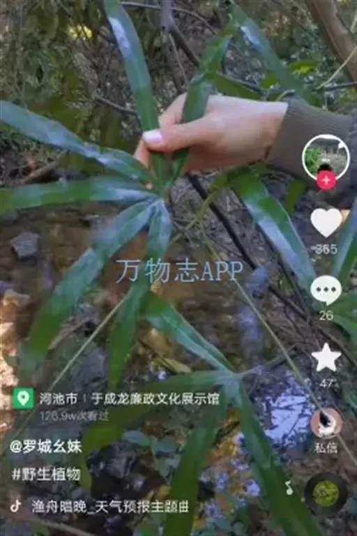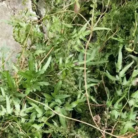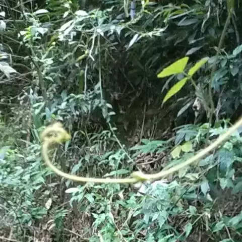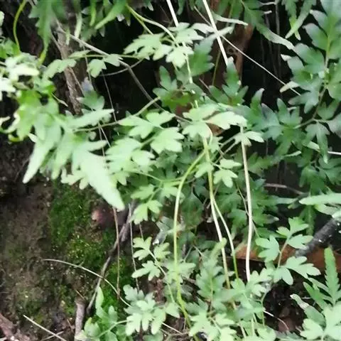多年生攀援草质藤木,植株长5-6m。叶二型,厚纸质,羽片多数,对生,于叶轴的短枝上相距约25cm,短枝顶端着生一丛红棕色短柔毛;营养羽片生于叶轴下部,叶柄长4-4.5cm,柄先端具狭边,羽片掌状深裂,裂片6,披针形,长17-22cm,宽1.8-2.5cm,基部截形或阔楔形,全缘,有软骨质狭边,干后常向下面反卷。孢子羽片生于叶轴的上部,二叉掌状深裂至近基部,裂片与营养裂片同形,长20-30cm,宽2-2.5cm;叶脉分离,二叉状分枝直达叶缘。孢子囊穗褐色或绿褐色,线形,长2-5mm,紧密排列,有孢子囊5-6对;孢子淡黄色,四面型。