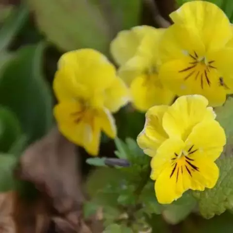 花黄色,有紫色条纹,宽约1厘米;花梗较叶长,细弱,长1.5-3.5厘米,在上部有2枚小苞片;萼片狭条形,长约5毫米,先端钝,基部附属物极短,边缘膜质;上方及侧方花瓣倒卵形或长圆状倒卵形,长7-9毫米,宽3-4毫米,侧方花瓣里面无须毛,下方花瓣稍短;距浅囊状,长1-1.5毫米;下方雄蕊之距短而宽呈钝三角形;子房近球形,无毛,花柱基部稍膝曲,上部2裂,裂片肥厚,微平展。闭锁花生于茎上部叶腋,花梗较叶短,结实。