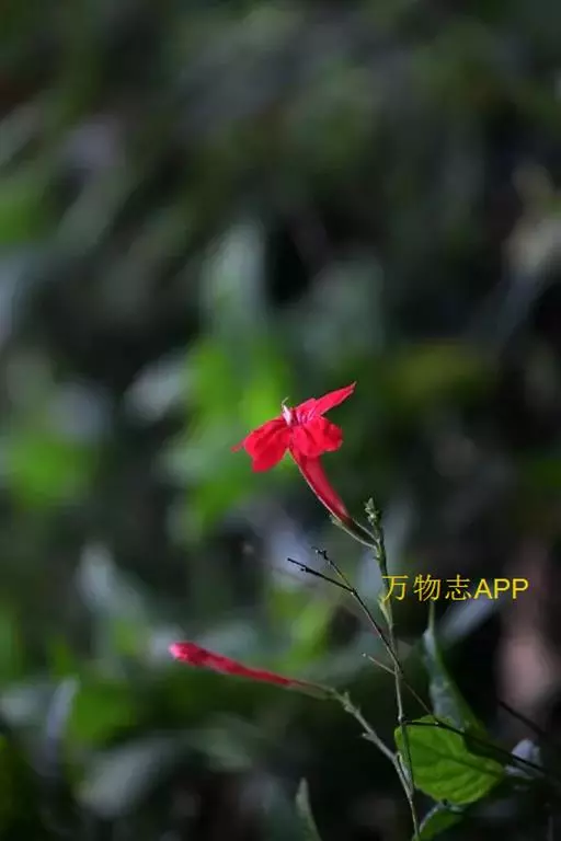 株高60-90厘米。叶椭圆状披针形或长卵圆形,叶绿色,微卷,对生,先端渐尖,基部楔形。花腋生,花冠筒状,5裂,鲜红色,花期夏、秋季。花姿幽美,适合庭园成簇美化或盆栽。 我国华南作园林观赏栽培。花期夏秋季。