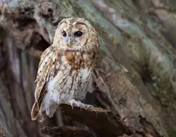灰林鸮是鸱鸮科、林鸮属鸟类。体长约40厘米;头大而圆,没有耳羽,面盘明显,橙棕色或黑褐色;上体暗灰色,…