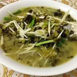 雪菜黄鱼汤,浙江宁波市传统的特色名菜,属于宁波十大名菜之一,此菜汤汁奶白鲜洁,鱼肉鲜嫩,雪菜鲜脆爽…