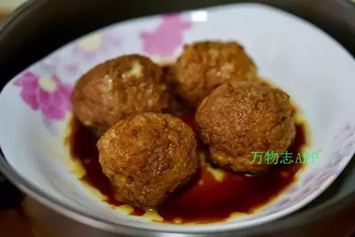 3.锅内留油,下入姜片、加入鸡汤、放入大肉丸子,放盐、味精、白糖、老抽王,用小火烧至汁浓,再用湿生粉勾芡收汁装碟即成。