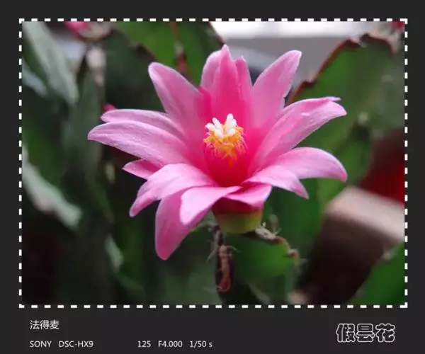 假昙花。花筒较短,相对蟹爪兰与仙人指来说花瓣应为单层,花瓣规则而又整齐。花为纯红色和粉红色两种。