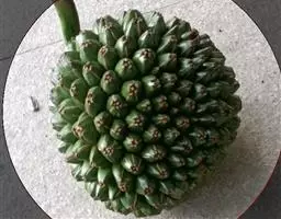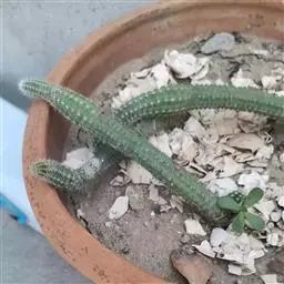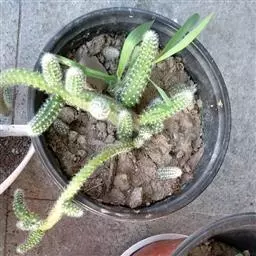附生类多肉植物,植株呈悬垂状生长,主茎近圆形或扁圆形,呈浅灰绿色,易木质化;分枝呈节状,较多。