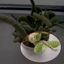 落花之舞茎节(叶片)为棱状,一般具三棱、四棱,最多不超过五棱,棱缘也呈紫红色。嫁接条件下可出现较厚的扁平状茎节。