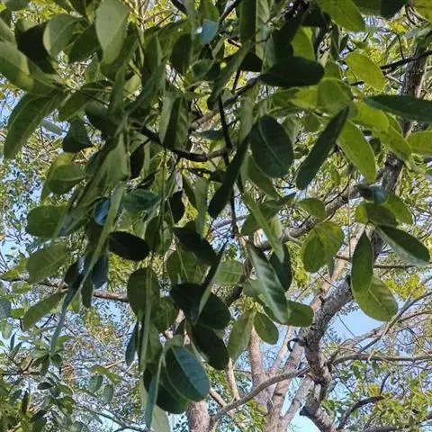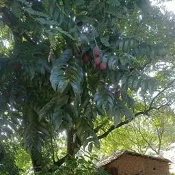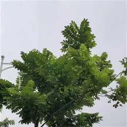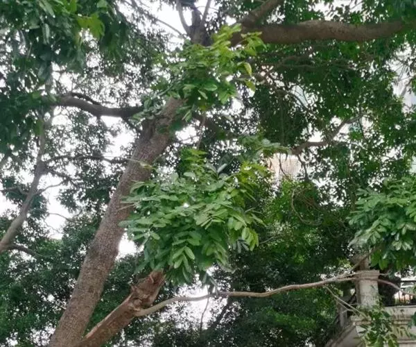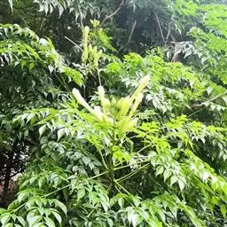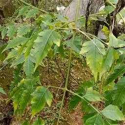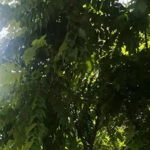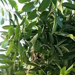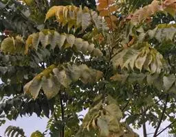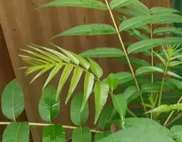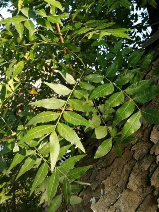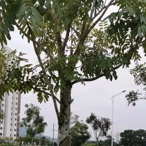 叶互生,叶轴和叶柄圆柱形,无毛,长15-60厘米或更长;小叶6-16,近对生或互生,顶端2对小叶对生,长圆形或长圆状椭圆形,下部小叶卵形,长7-17厘米,宽3-6厘米,先端短渐尖或急尖,基部宽楔形或略圆形,稍不对称,叶面深绿色,背面苍绿色,侧脉9-14对,干后两面稍突起,全缘;小叶柄长5-10毫米。