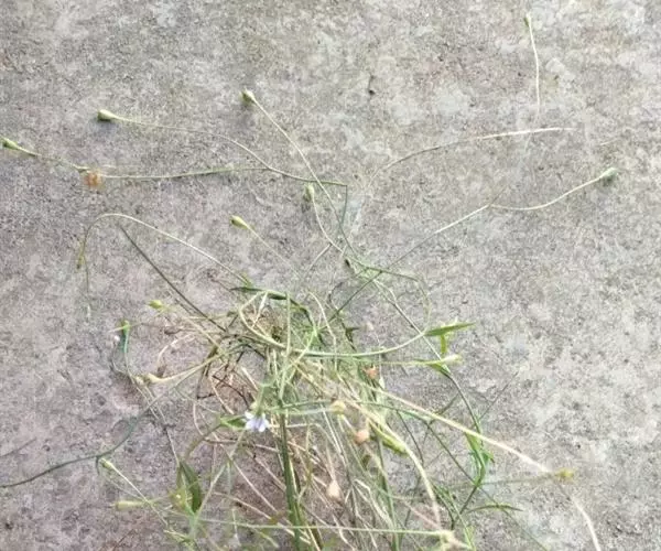 本品长10~30厘米或过之,根细长,稍扭曲,有的有分枝,长达10厘米,直径0.3~0.7厘米,棕褐色或浅棕黄色,具纵皱纹;断面黄白色。茎纤细,近基部分枝。叶互生,无柄,叶片常皱缩,展平后呈条形或倒披针状卵形,长1~3厘米,宽0.2~0.4厘米,灰绿色或棕绿色。花单生于枝顶,浅蓝紫色。蒴果倒圆锥形,长约6~8毫米;种子多数,细小。气微,味微甜,嚼之有豆腥味。以根粗、茎叶色绿者为佳。
