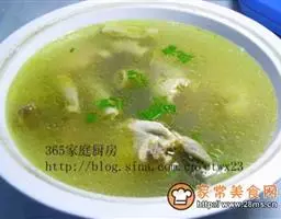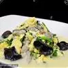 原料:材料1: 鲜蚵 150克 (事先以盐清洗过),茼篙菜 70克(清洗後切断),土鸡蛋2个。