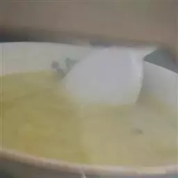 再加入半碗材料 一起煎至凝固、呈透明状。