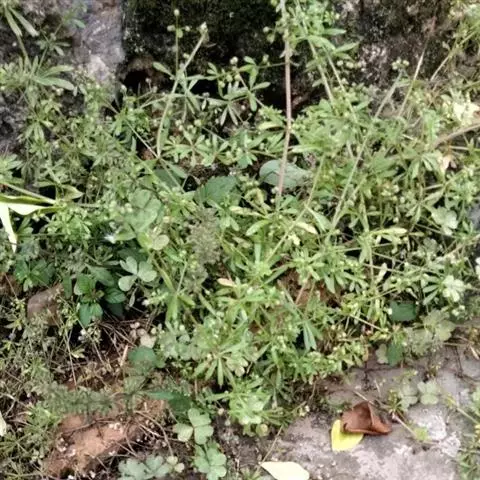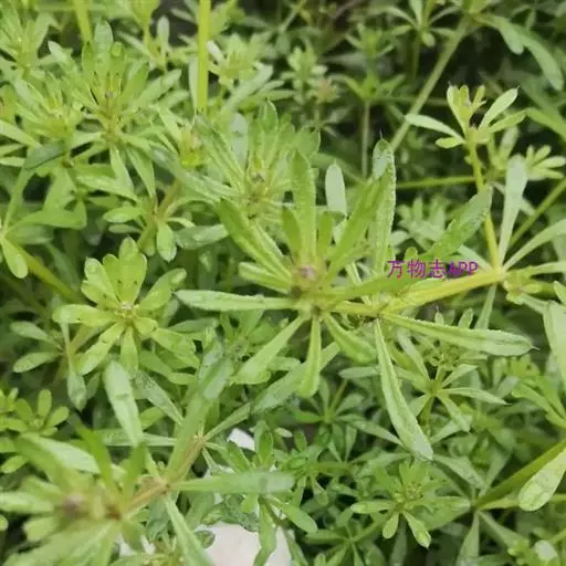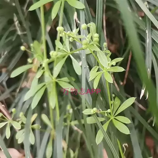 六叶葎 Ehrend. & Schönb.-Tem. ex R. R. Mill)是茜草科拉拉藤属的一年生草本。常直立,有时披散状,高10-60厘米左右,近基部分枝,有红色丝状的根;茎直立,具疏短毛或无毛;叶片薄,纸质或膜质,长圆状倒卵形、倒披针形、卵形或椭圆形顶端钝圆而具凸尖;聚伞花序顶生和生于上部叶腋,苞片常成对披针形,花冠白色或黄绿色,裂片卵形,雄蕊伸出;果近球形,单生或双生,密被钩毛;花期4-8月;果期5-9月。六叶葎分布于中国北、山西、陕西、甘肃、江苏、安徽、浙江、江西、河南、湖北等地,印度、巴基斯坦、尼泊尔、锡金、不丹、缅甸、日本、朝鲜、俄罗斯均有栽培。生于海拔920-3800米的山坡、沟边、河滩、草地的草丛或灌丛中及林下。六叶葎味甘,性平,具有清热解毒、利尿消肿的功效,可用于治疗尿路感染、赤白带下、痢疾、痛肿、跌打