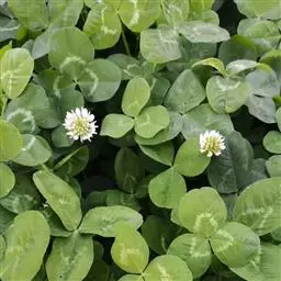 白车轴草,豆科车轴草属的多年生草本植物,茎贴地匍匐;叶柄直立,小叶心形,边缘具细齿,叶脉明显,…