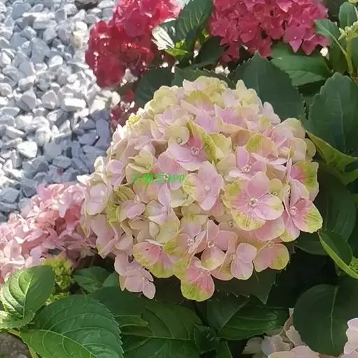 ②上盆栽培养护。绣球花经25天左右的精心管理,已经成活,并从顶芽开始向上长出新的叶芽,此时须分栽上盆管理。栽培绣球的培养土用针叶土(含酸较高)加糠质,氮、磷、钾(按针叶土份量)复合肥与土拌匀堆积经充分发酵半年以上,用前翻开晾晒数日就可使用。待苗成活后顶枝长至10厘米左右就可进行第一次打顶,促使下部萌发新叶芽:待后长出的数个枝芽长到一定的长度时进行第二次打顶,并让其生长均衡茂盛,主干枝干粗壮时,只留下3~4个枝条任其生长。在上盆成活后到定枝期间,需施肥3~4次,肥以磷酸二氢钾为主。