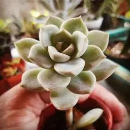 奥普琳娜为风车石莲属多肉植物,肉质叶互生,呈莲花状排列,整体颜色呈现粉粉的淡蓝色,叶缘和尖端容易泛红,…