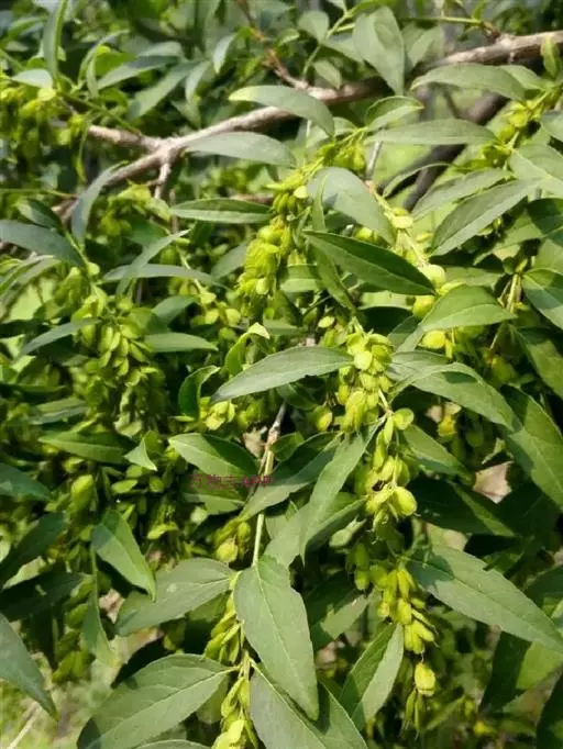 落叶灌木或小乔木,高达8米;树皮灰褐色。枝灰白色,圆柱形,小枝淡黄色或淡绿色,四棱形或具棱角,无毛。叶片纸质,披针形、卵状披针形或狭卵形,长3-12厘米,宽0.8-2.6厘米,先端锐尖至渐尖,基部楔形,全缘,两面无毛,中脉在上面稍凹入或平,下面凸起,侧脉2-8对,斜向上延伸,两面稍凸起,有时在上面凹入;叶柄长1-5毫米,上面具沟,光滑无毛。