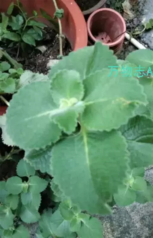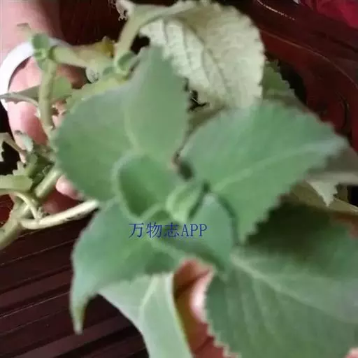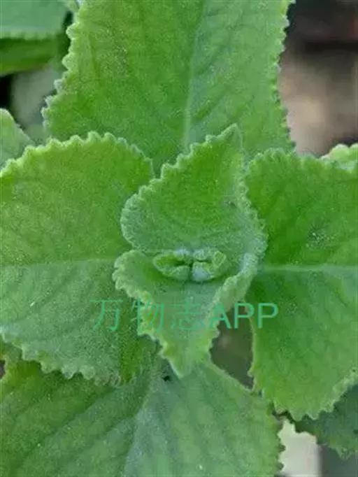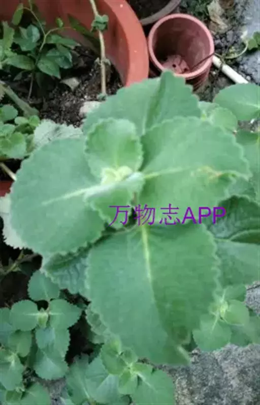 多年生常绿草本,株高20-90厘米。茎蔓生,匍匐状细弱,茎枝棕色,嫩茎绿色,分枝多,全株被有细密的白色绒毛。叶对生,肥厚,肉质,卵圆形,先端钝尖,光滑厚革质,基部近截平,边缘有钝锯齿,叶绿色,具柄。穗状花序,花小白色,顶生或腋生,小花唇形,淡紫色。瘦果。花期春至秋季。 [1-2]