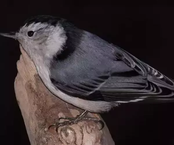 白胸鳾是一种小型鸣禽,也是一种北美洲的小型燕雀,体长约15.5厘米。成鸟从头到後颈处为黑色,其他上体部份为浅蓝灰色,覆羽为黑色,上有微细的色带,而三级飞羽则是浅灰黑色的,外部尾巴的羽毛为黑色的,并且伴有白色间条,面部及腹部为白色。它是惟一的鳾科动物中被白色面部包围着黑色的眼睛。其外部尾巴的羽毛为黑色,并且有白色间条。雌雄鸟颜色相似。肢部很短,但爪则很长,具有短翅膀与短尾巴。
