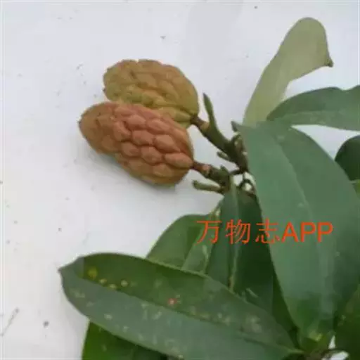 聚合果褐色,卵球形,长2-5厘米,蓇葖露出面有粗点状凸起,先端具长约1毫米的短喙;种子红色。花期5月,果期10月。