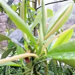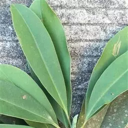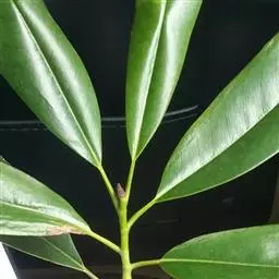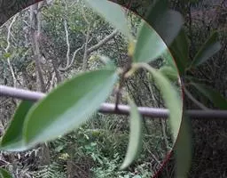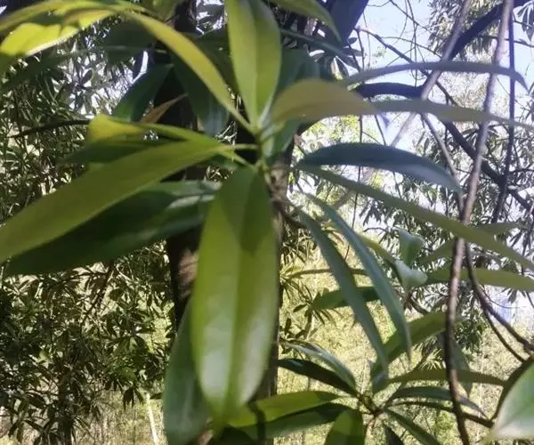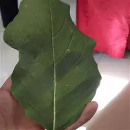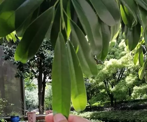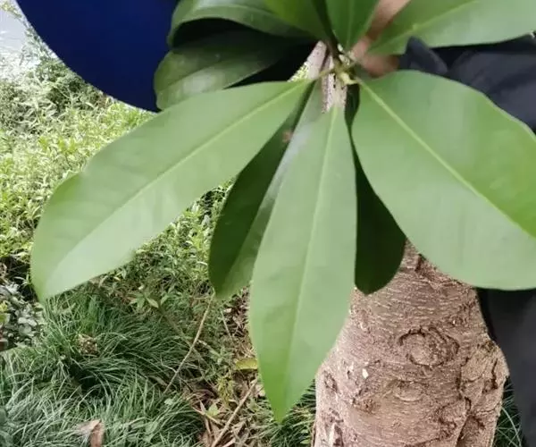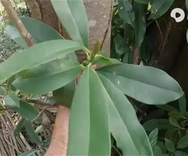 叶革质、狭倒卵形、狭椭圆状倒卵形,或倒披针形,长8-17厘米,宽2.5-5.5厘米。先端短急尖,通常尖头钝,基部楔形,沿叶柄稍下延,边缘稍内卷,下面疏生红褐色短毛;侧脉每边8-12条;叶柄长1-3厘米,基部稍膨大;托叶痕半椭圆形,长3-4毫米。