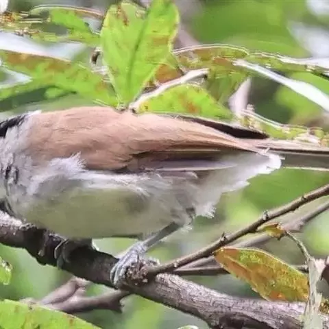 橙颊梅花雀体长约10厘米,头部灰色,两侧有大块橙色区域,嘴基及眼下方有黑纹,两条黑纹间呈白色,…