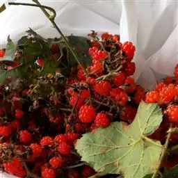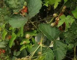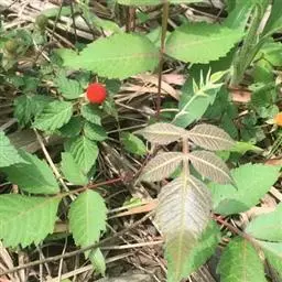 覆盆子为灌木,高1—2米;枝褐色或红褐色,幼时被绒毛状短柔毛,疏生皮刺。小叶3-7枚,长卵形或椭圆形,…