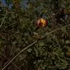 花单生,顶生,稀2-3朵,直径达2厘米;花梗长2-4厘米,被长柔毛和针刺;苞片和托叶相似;花萼长1.5-2厘米,外面密被针刺和长柔毛;萼筒卵球形;萼片不等大,叶状,卵形至卵状披针形,外萼片宽大,梳齿状深裂或缺刻状,内萼片较狭,顶端渐尖,有少数锯齿或全缘;花瓣狭倒卵形,白色,有爪,稍短于萼片;雄蕊多数,直立,无毛;雌蕊多数,但很多败育,子房顶端和花柱基部微具柔毛。果实红色,球形,直径1-1.5厘米,具反折萼片;小核近光滑或微皱。花期5-7月,果实7-8月。