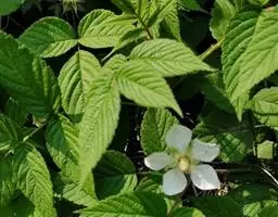 白花悬钩子是蔷薇科、悬钩子属植物。落叶灌木,茎直立、具腺毛,叶互生,边缘锯齿,有叶柄;托叶与叶柄合生,…