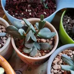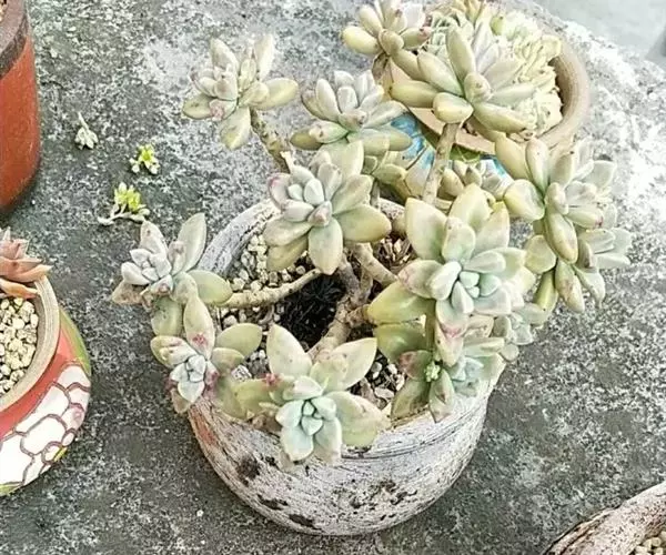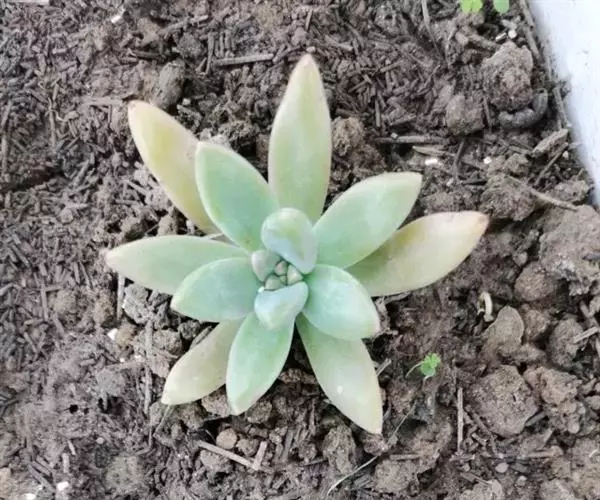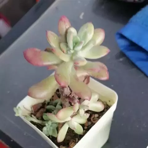 此外还可用老株旁边萌发的幼株进行扦插。扦插前需将切口晾干,再将下端茎干浅埋入沙土中。其余注意事项同叶插。扦插介质需使用疏松的沙质土壤,以便植株的根系能够良好地生长。